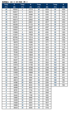 温度出力:10K Ω NTC抵抗 (出力表2に示されている)